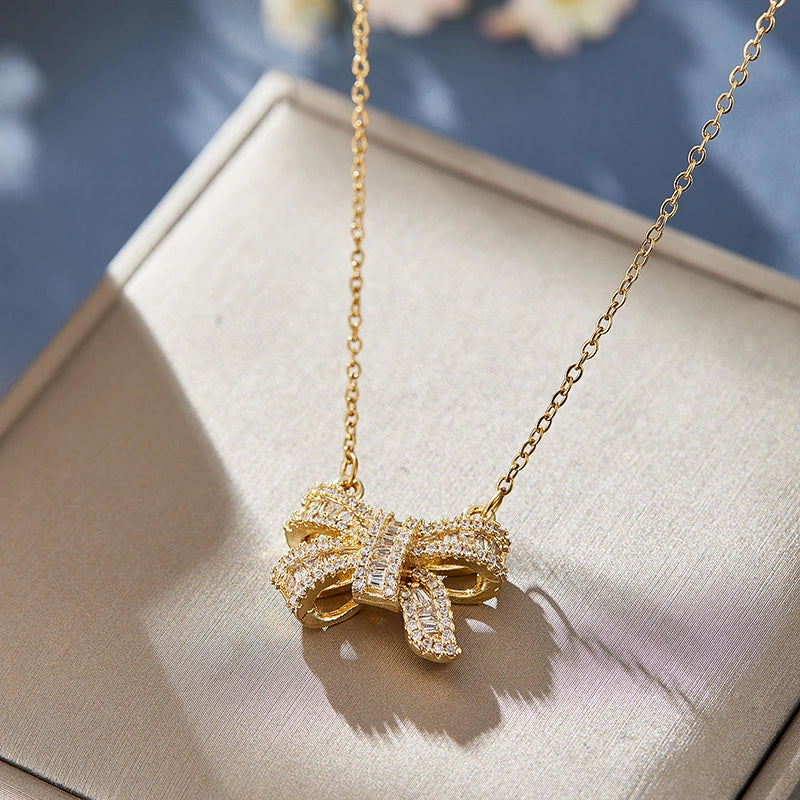 This elegant bow-style necklace adds a touch of charm and sophistication, symbolizing grace and femininity. Crafted with exquisite detailing and a delicate chain, it’s perfect for both everyday wear and special occasions.
