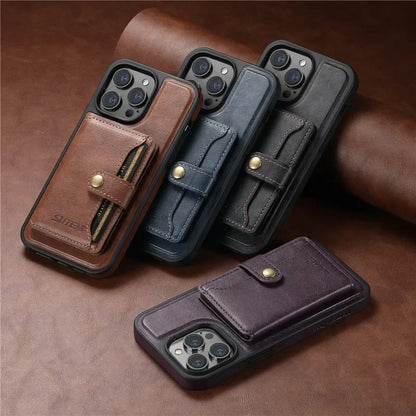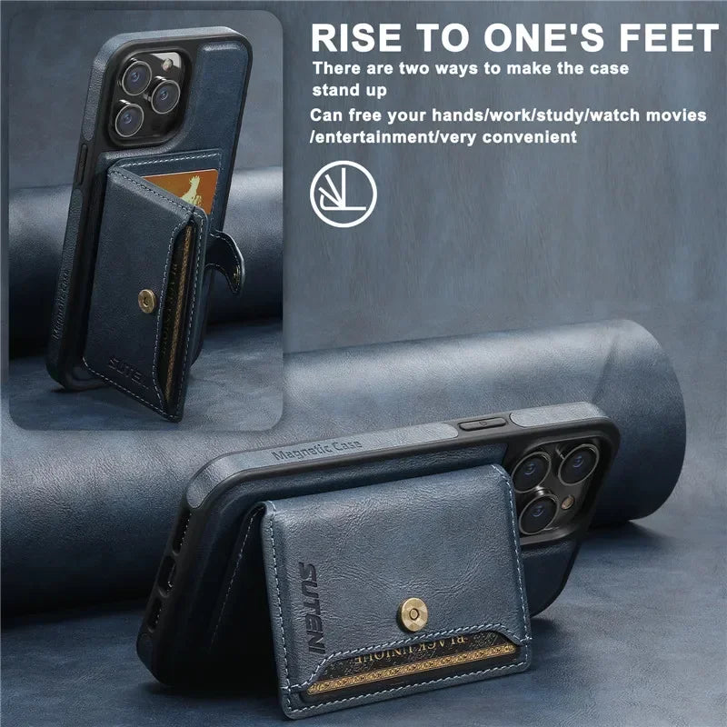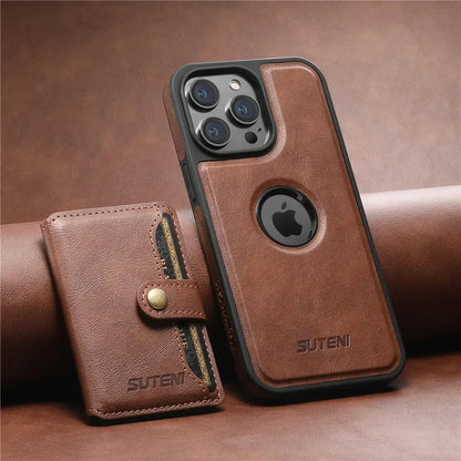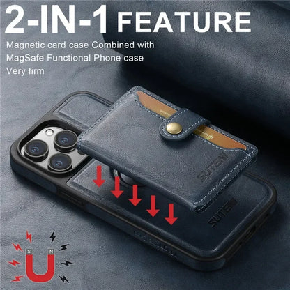 This 2-in-1 magnetic wallet case combines timeless leather style with modern MagSafe compatibility for effortless everyday use. With a detachable card holder and secure snap closure, it keeps your essentials close without compromising function or design.