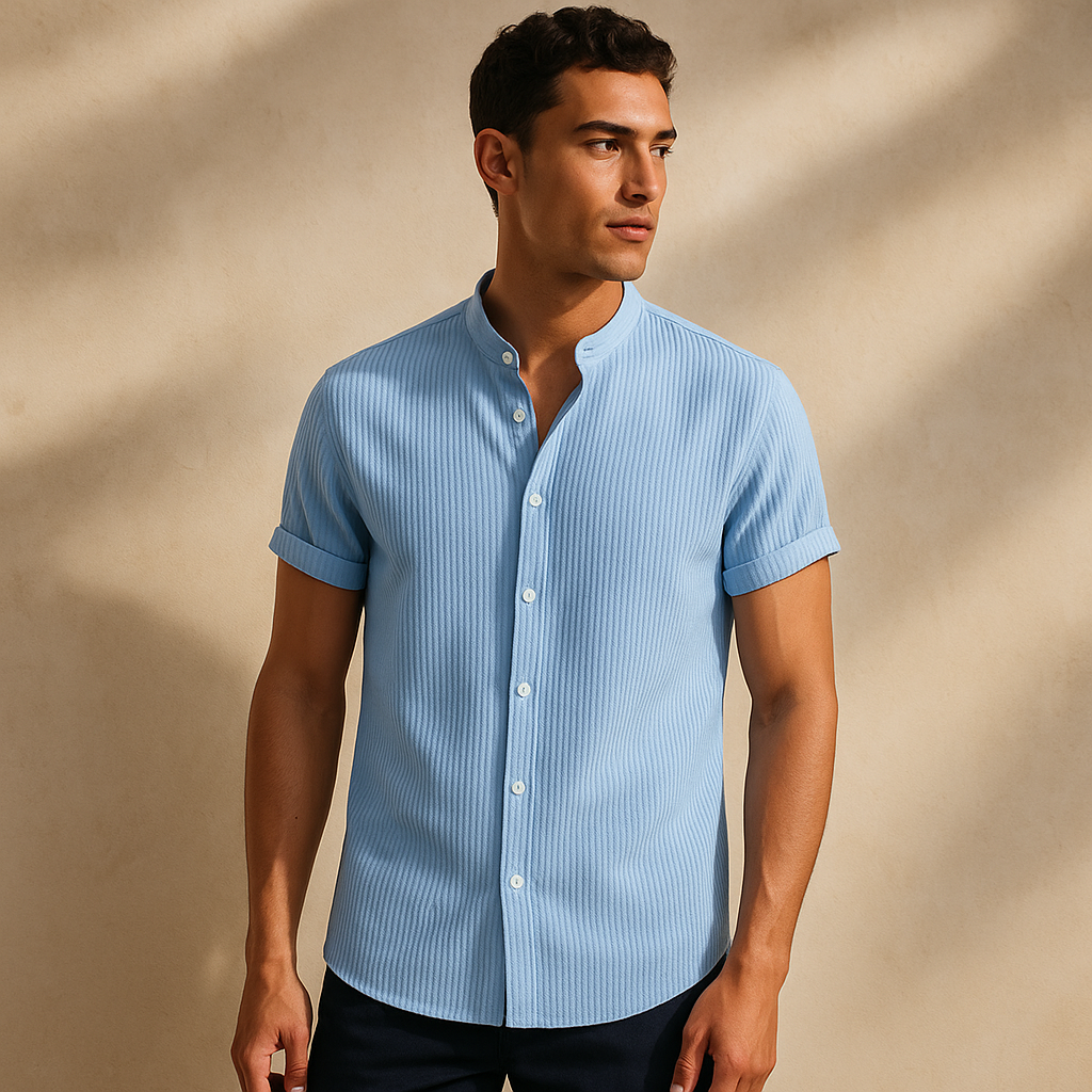 Turn heads with effortless style in this lightweight, breathable shirt crafted from a durable ribbed fabric that feels as good as it looks. Whether you're out on the town or soaking in summer rays, this piece keeps you cool, sharp, and ready for compliments.